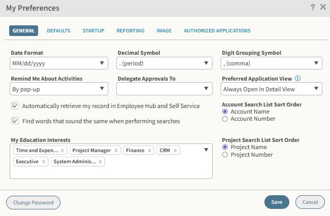 Every professional works differently. Vantagepoint’s personalization features allow you to tailor the system to your preferences — adjusting date and number formats, saving favorite menu items, and defining your default landing page. Small changes like these reduce friction and make the system feel like it was built for you.